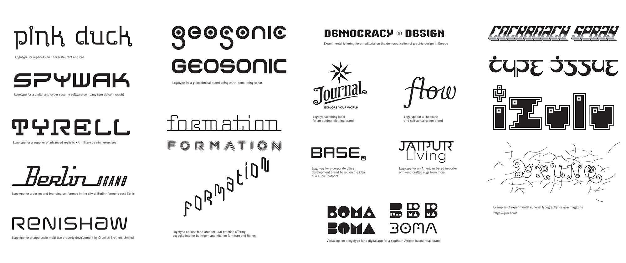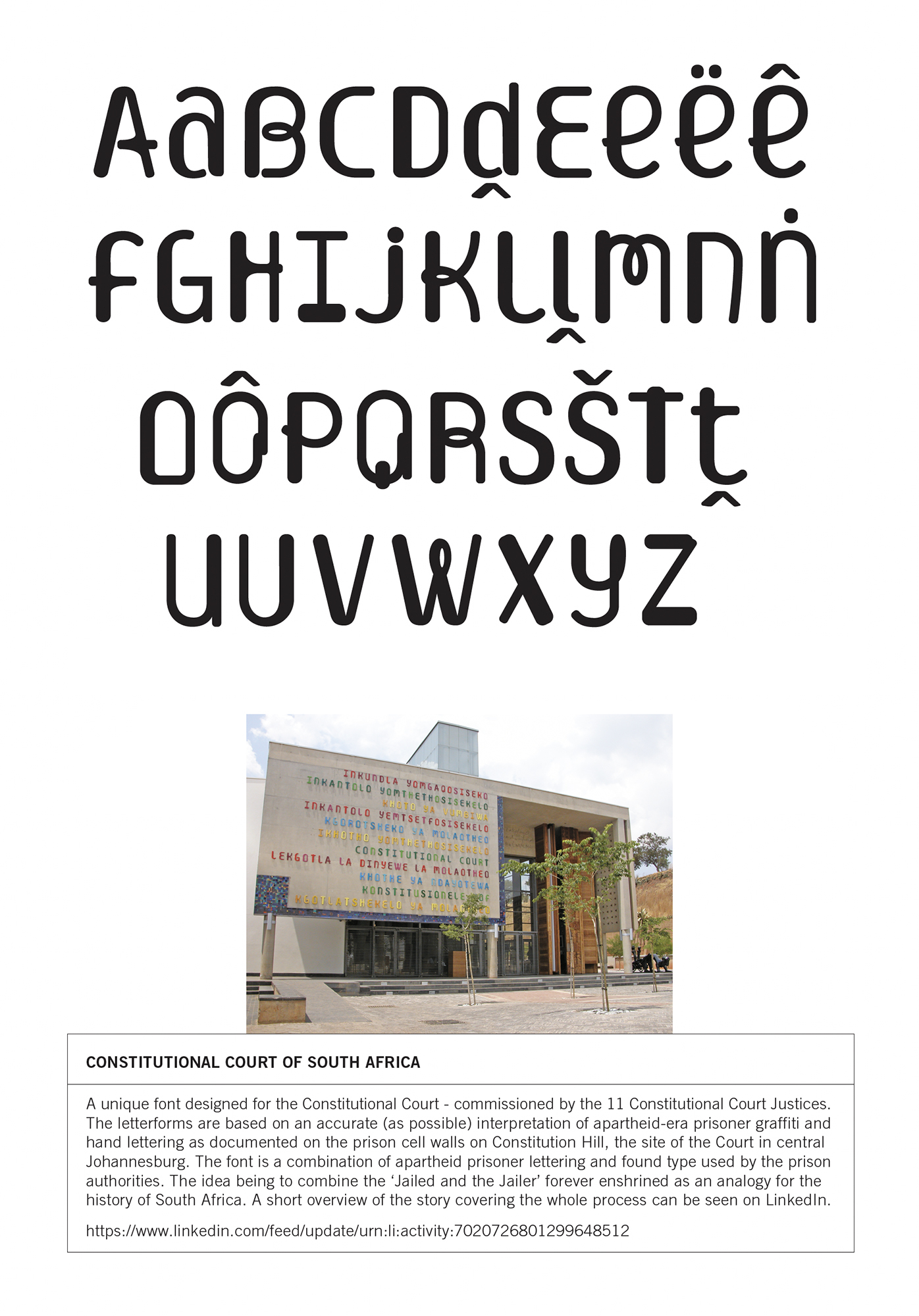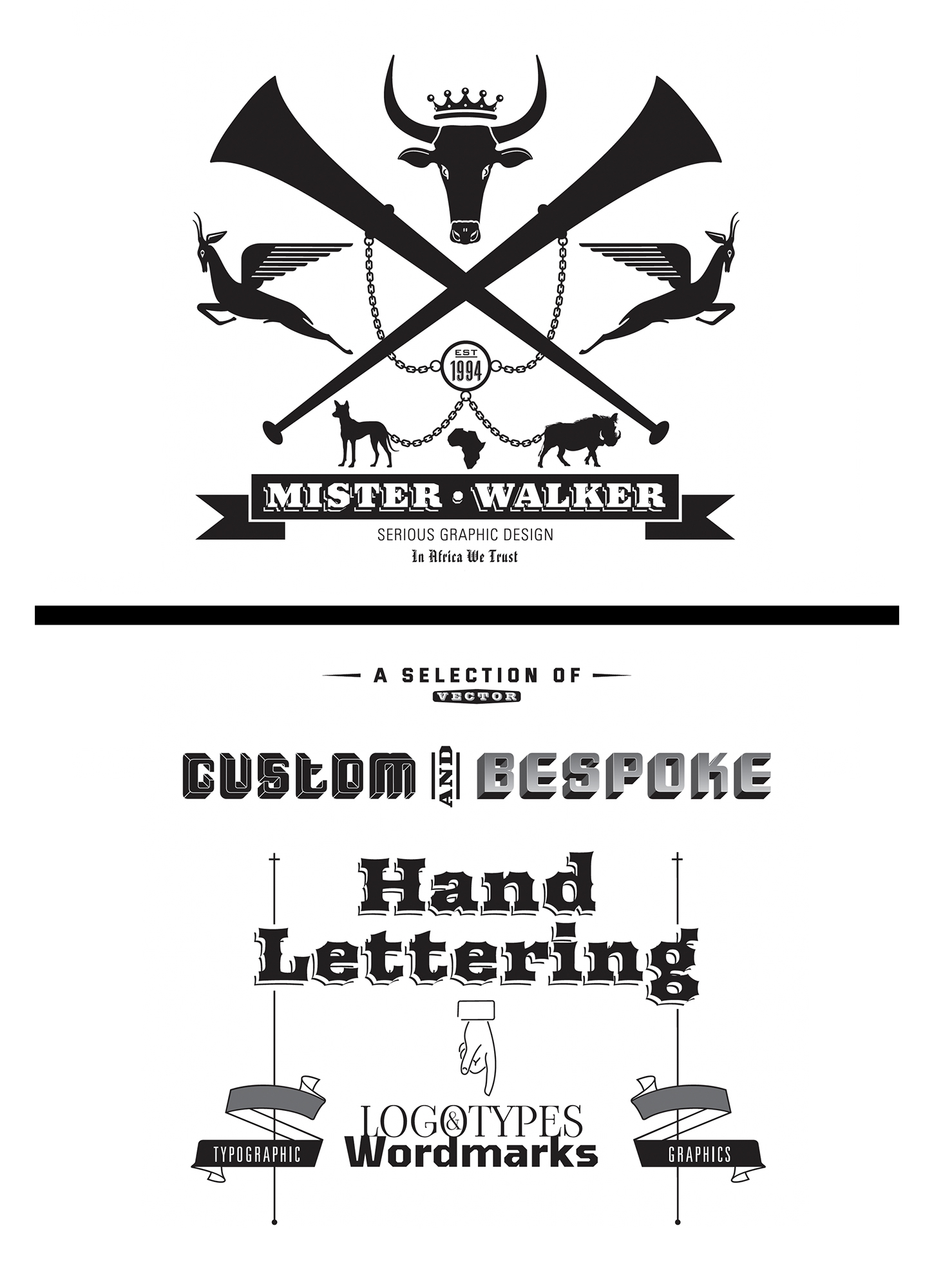 Hand-lettering (vector) and bespoke typography and/or typefaces for various clients ranging from The Constitutional Court of South Africa to corporate and editorial commissions