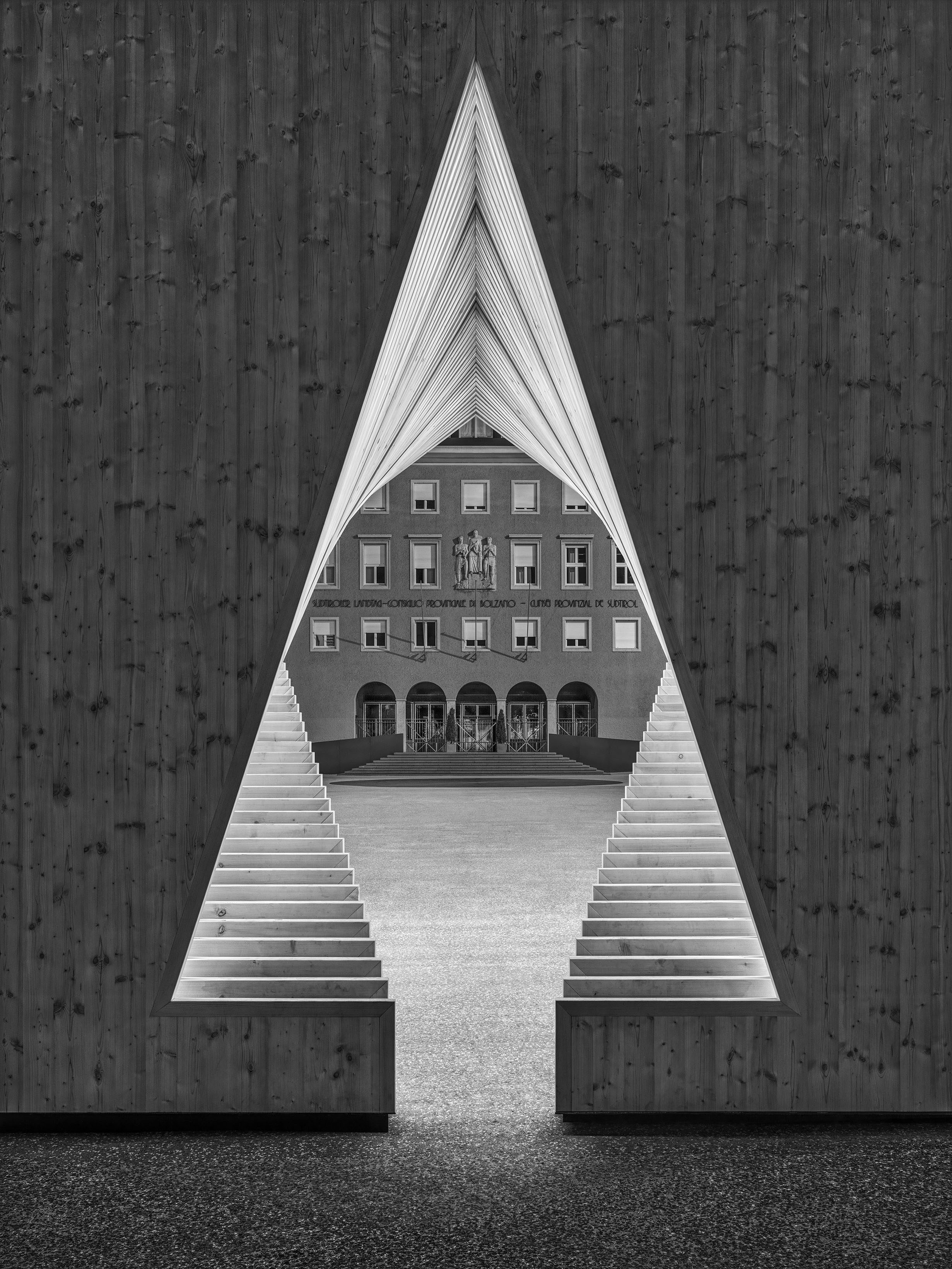 Experience the walk-in installation. A tree grows in the forest – wood comes from the tree – and the wood becomes a house. The wooden “woodpassage” sculpture placed outdoors in the centre of Europe exemplifies this process. With simple pictographic symbols over forty stages, it conveys the transformation from fir to house. This conversion is shown as cuts out of large blocks of wood, cut by cut. The result is a sensory experience; 4.32 m wide, 4.32 m high and 8.65 m long www.woodpassage.eu
